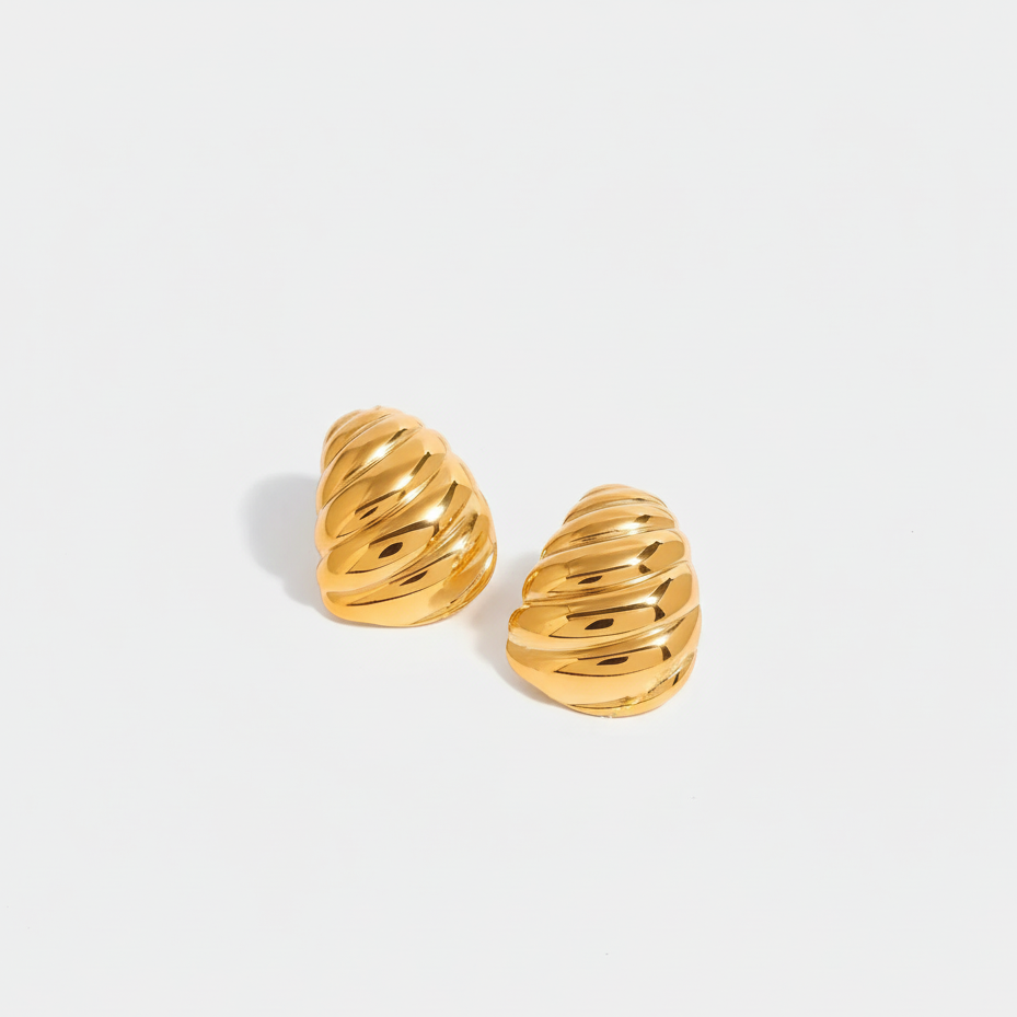 Graceful and radiant, the Alina Spiral Drops feature a stunning teardrop design with elegant spiral grooves, symbolizing the beauty of light and movement. These earrings exude timeless sophistication and modern charm, making them the perfect statement piece for any occasion. Let their luminous glow brighten your style effortlessly.