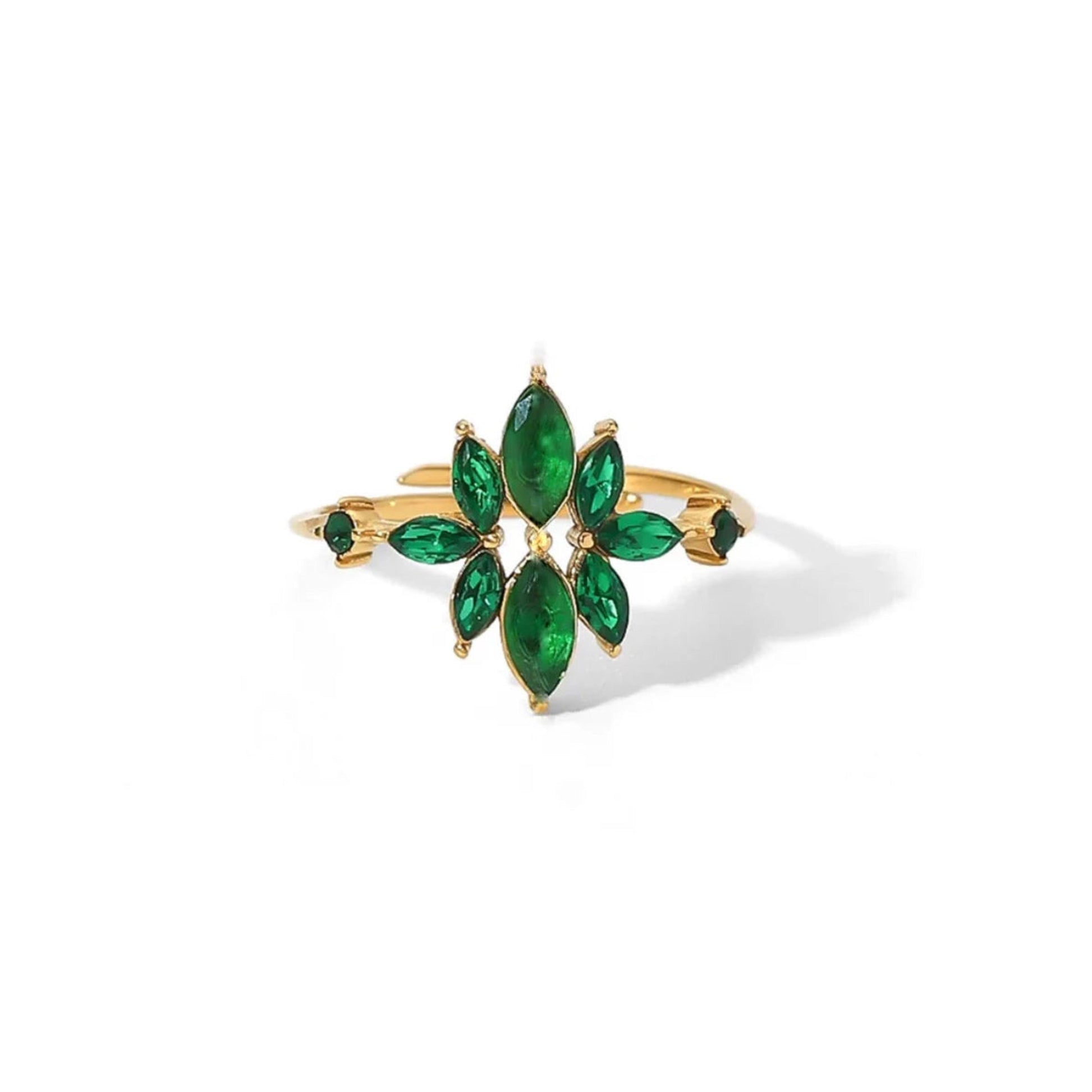 Indulge in the delicate beauty of our Emerald Adjustable Ring, a captivating piece that exudes elegance and charm. The floral design adds a touch of femininity and whimsy to the ring, making it a perfect choice for those who appreciate understated elegance and timeless style.