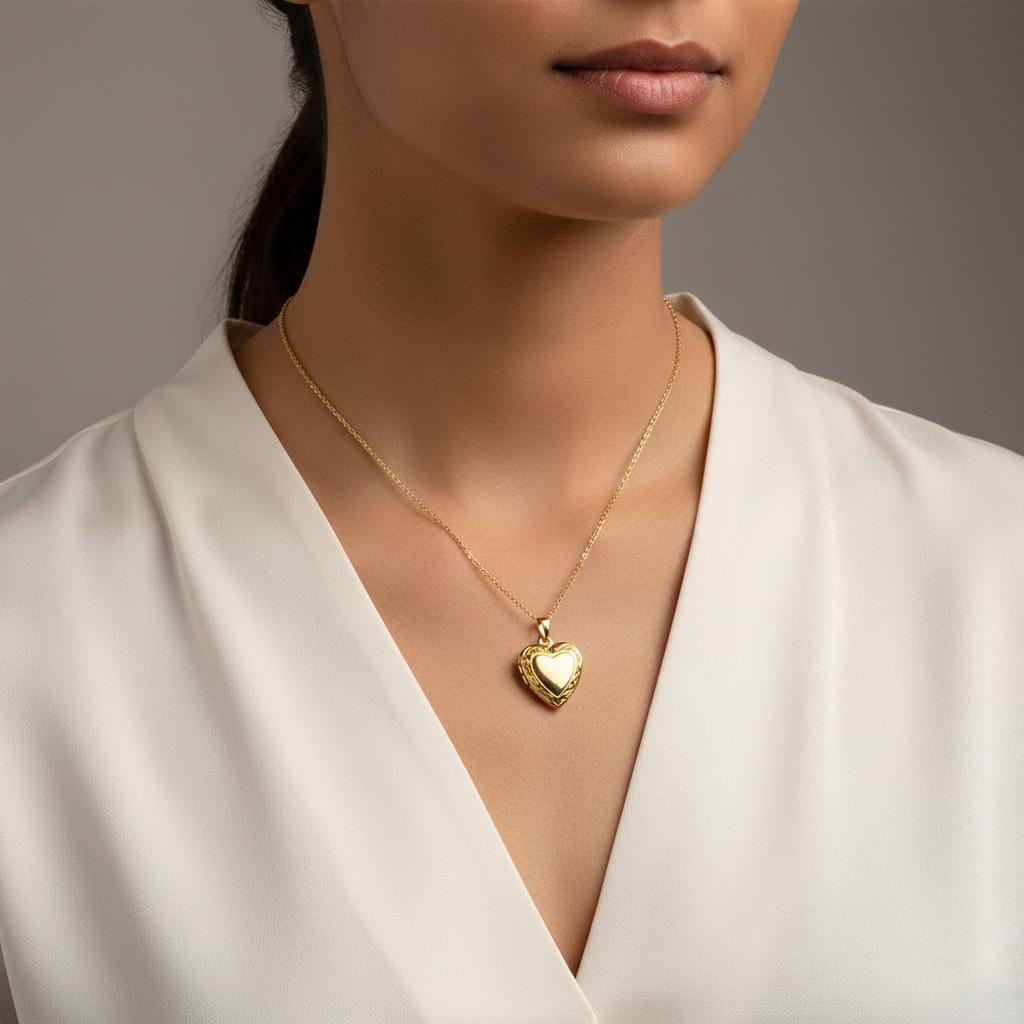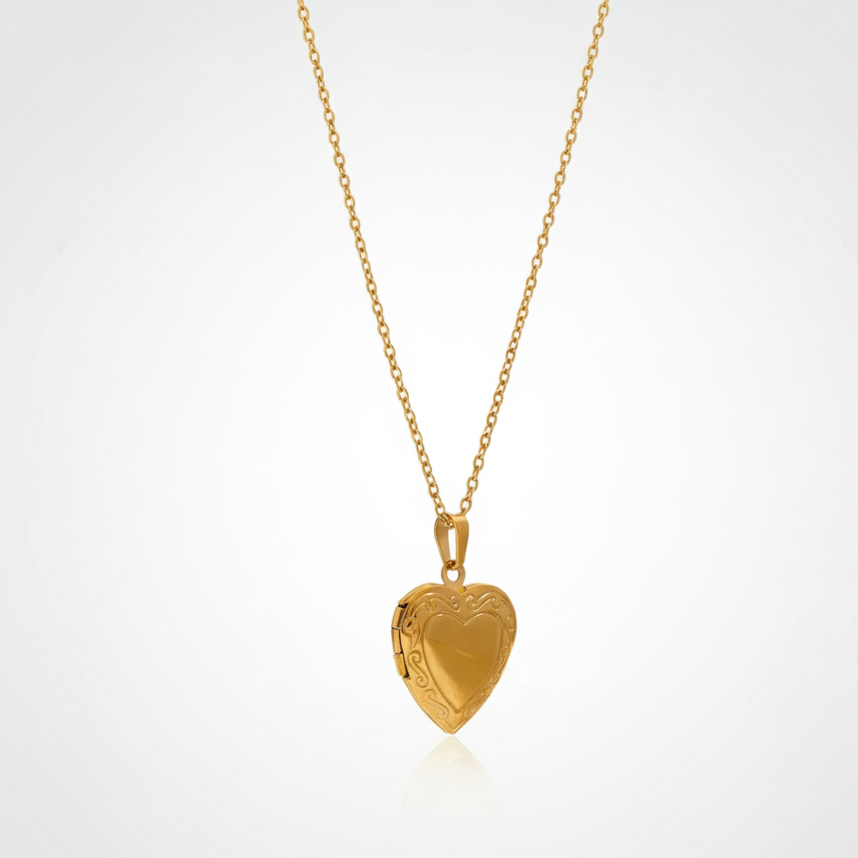 Elevate your ensemble with timeless elegance and sentimental charm with our Golden Embrace heart locket. Crafted in gleaming gold-toned metal, this exquisite piece serves as both a stylish accessory and a cherished keepsake for treasured memories. The heart-shaped design evokes feelings of love and warmth, making it the perfect addition to any outfit.