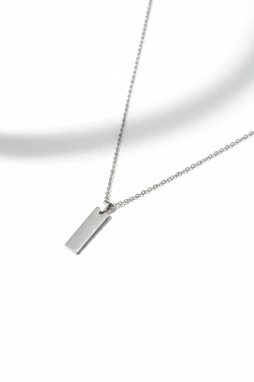 Capture your special moments with the Sterling Moments Custom Necklace. Featuring a polished silver rectangular pendant, this necklace is designed for personalization with your choice of engraving. Perfect for commemorating significant dates or names, this piece is a timeless addition to any jewelry collection, suitable for every occasion